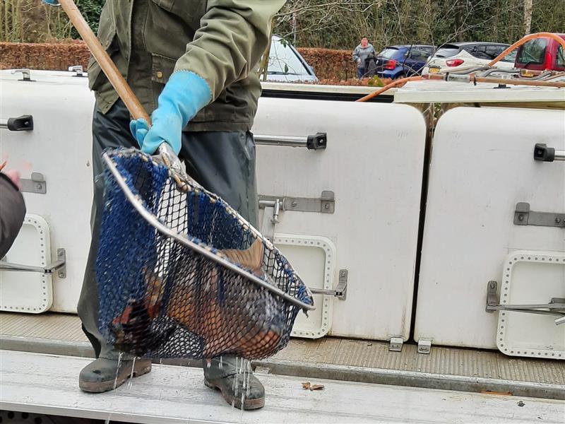 Op 30 januari hebben we op de Oostelijke vijver 64 spiegel- en schubkarpers uitgezet. De karpers waren afkomstig van de gebroeders Vandeput uit Zonhoven.